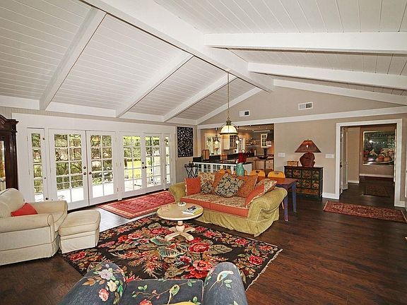 A MAJOR RENOVATION HAS TURNED THIS RANCHER INTO A STUNNING AND SEAMLESS MIX OF COTTAGE/MODERN. ALL NEW GRANITE/STAINLESS KITCHEN (WITH 64" FRIG/FREEZER COMBO) OVERLOOKS GREAT ROOM WITH VAULTED WOOD CEILINGS, VIEWS OF HORSES AND SUNSET AND BEVELED GLASS FRENCH DOORS LEADING TO HUGE PATIO. TWO ALL-NEW BATHS. MASTER BEDROOM LEADS TO PRIVATE RELAXING PATIO. FAMILY ROOM WITH MASSIVE STONE FIREPLACE AND BUILT IN BOOK CASES. HORSES WELCOME.