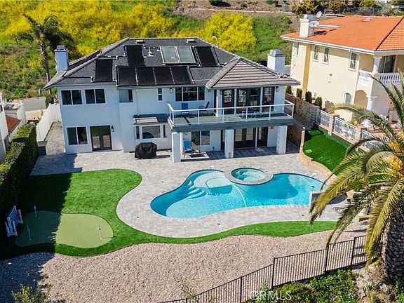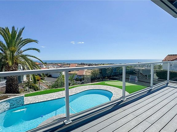 Welcome to your seaside sanctuary! Nestled in the heart of Capistrano Beach, this stunning 5-bedroom, 4-bathroom home offers unparalleled ocean views . Step inside this meticulously designed residence, where modern luxury meets coastal charm. The open-concept floor plan boasts spacious living areas, perfect for both relaxing and entertaining. Large windows flood the home with natural light while showcasing the mesmerizing ocean vistas from nearly every room. The gourmet kitchen, featuring high-end appliances, sleek countertops, and ample storage space. Retreat to the luxurious Primary suite, complete with a private balcony, a spa-like ensuite bathroom, and endless ocean views. Four additional bedrooms offer comfort and convenience for family and guests, with one other Jr primary bedroom thoughtfully appointed with its own ensuite bath. Outside, the meticulously landscaped grounds provide a serene escape, with a mini-golf course, a spacious patio area perfect for al fresco dining or simply soaking in the coastal ambiance. And for those warm California days, take a refreshing dip in the sparkling pool, surrounded by lots of paver stone hardscape, and low maintenance artificial turf, palm trees and ocean breezes. Located just minutes from the beach, this home offers the ultimate coastal lifestyle, with easy access to shopping, dining, and recreation. Don't miss your opportunity to own this breathtaking ocean-view pool home retreat in one of Southern California's most coveted communities.