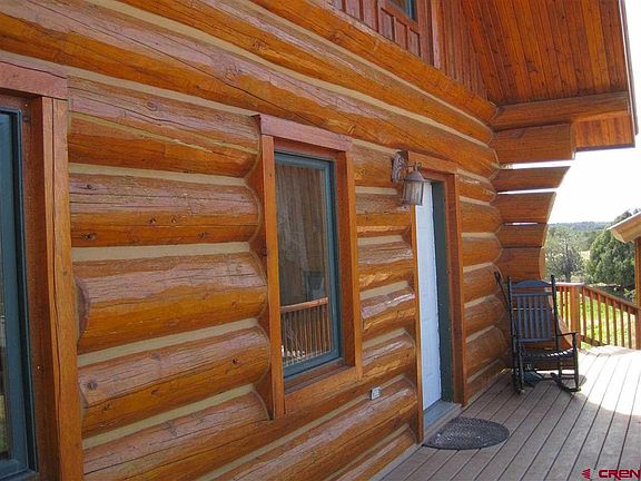 Unique rural property that includes a log home, detached oversized two car garage with guest quarters above, bunkhouse (765 sq. ft) with two bedrooms and two baths and a greenhouse/storage shed. This 35 acre property enjoys panoramic views of Mesa Verde and the La Platas. The main log home features an expansive wrap around deck with hot tub, spacious kitchen, cozy living room, one bedroom and bath downstairs and an upstairs loft area with large master bedroom, en suite bath and laundry area. The guest quarters located above the garage includes its own efficiency kitchen, two baths and a large open living and bedroom area upstairs with gorgeous mountain views. The bunkhouse is just a few feet away as is the greenhouse/shed. The property includes two water taps thru Montezuma Water Company and the bunkhouse has its own dedicated septic system. The zoning for this property is both residential and commercial which enhances its possible future use. Ideal location for a large family compound, bed and breakfast, camp or other uses requiring multi sleep options. The location is convenient to Mancos yet privacy abounds as do the expansive mountain views.