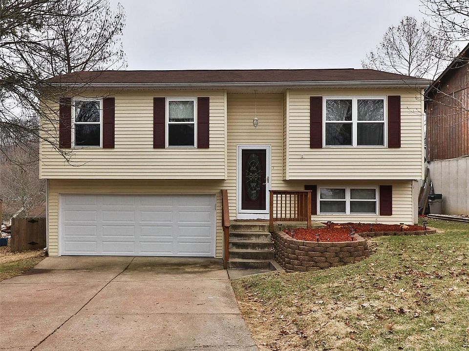 Welcome to this delightful, updated/well-maintained 4 Bedroom, 2 Bath home in the Seckman School District. As you enter up the split foyer you are invited into the open living room/dining room. Just off the dining is the open kitchen and access to the spacious deck, both great for entertaining family and friends. The fresh paint showcases all the newer 6 panel doors leading to the 3 upper level bedrooms and full bath. The lower level offers an additional family room/rec room, and another bedroom/den with bath. The 2-car garage comes with shelving for additional storage and a workbench great for projects. New garage door installed 2019. Also comes with an HMS Home Warranty.