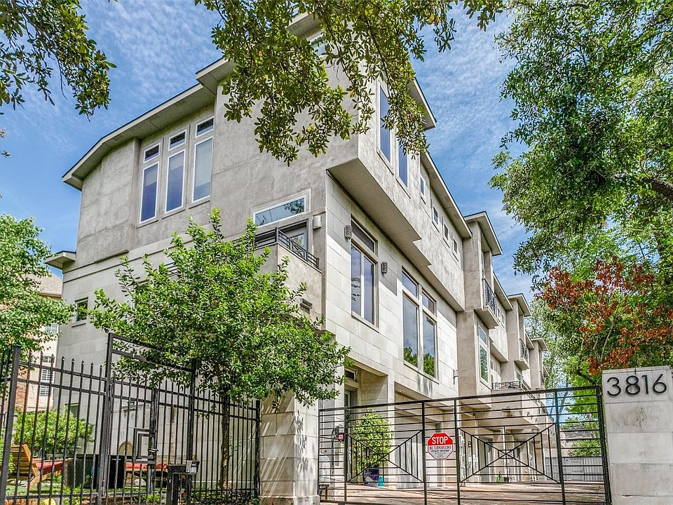 Updated, breathtaking TOWNHOME - End unit in a boutique gated residence in the coveted North Oaklawn area with access to shopping, tree lined streets, neighborhood parks, restaurants, Downtown Dallas, Medical District, Uptown, Love Field & DFW Airports, Dallas North Tollway, I-35 and much more. Offers 3 outdoor private areas including a roof top deck, yard space and balcony along with a 2-car garage. Modern contemporary elegance meets comfort with well-appointed high end appliances & fixtures throughout. Inviting open floor plan with beamed ceilings, tons of natural light and great storage! Updated kitchen with marble tile walls, Cambria Quartz, solid wood cabinetry & wood flooring. Generous great room with concrete paneled fireplace + access to private balcony for grilling & entertaining. Tastefully designed reading nook with built-in storage. Primary suite offers spa like amenities dbl sided fireplace, dbl walk-in shower & garden tub. Redesigned laundry room + great storage!
