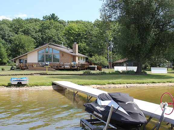 One of a kind offering on all-sports Otsego Lake. Three lots encompassing 307 ft. of frontage on sandy Sunset Point. This offering encompasses a solid 4/3 home, two garages and a completely updated 1/1 guest cottage. The main home features an open, airy floor plan with cathedral ceilings, incredible stone fireplace & floor to ceiling bay windows overlooking the lake. A spacious modern kitchen features, quartz countertops, gorgeous cabinets, tile back splash, wine bar, coffee bar & stainless-steel appliances with peninsula bar seating. An incredible master suite with huge, walk-in closet, jacuzzi tub, a second fireplace and incredible views. A huge lakeside deck to take it all in! Detached 24x27 garage. Four-Season guest cottage includes 140 ft. of sandy frontage. Total 307' on Otsego Lake