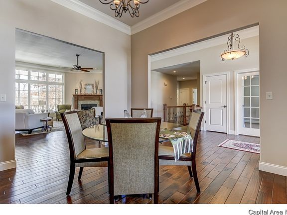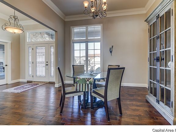 Incredible like new George Melton build on a tree lined lot in Buckley Ridge! No detail has been spared in this ranch; from the captivating curb appeal to the quality 2x6 construction. Gorgeous maple flooring through the main floor accompanied by crown molding & lavish light fixtures in every room. Oversized kitchen & bkfst nook offer island, granite, stainless & an abundance of natural light via lg Anderson windows. Mostly finished daylight bsmt includes, rec rm, family space, wet bar, full bath, 5thBR & TWO bonus rms to fit your individual needs. Luxurious home in Pleasant Plains Schools!