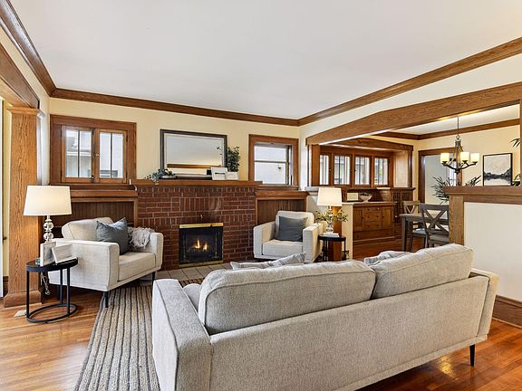 You will be captivated by this enchanting Craftsman home with it's many windows allowing the light to fill the main living areas with a warm glow enhanced by the stunning natural woodwork and hardwood floors. Recent kitchen update with new cabinets, backsplash and stainless appliances. Most of the home has vinyl replacement thermal pane windows with the exception of the living and dining rooms which retain their original Craftsman style. You will find two bedrooms on the main level and a huge bedroom up with adjoining additional room that affords a ton of flexibility. The fourth bedroom is in the lower level with a family room area and sitting area. The three season porch off the kitchen is the perfect spot to relax with a beverage. Plenty of deck space for warm weather relaxing and dining as well. Just a short walk 1 block to the South you will find full service Phelps Field Park! Check the photo captions for other amenities close by and more info.
