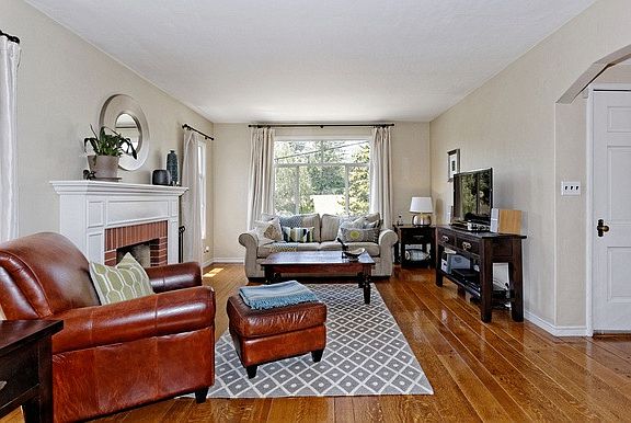 Charming, bright, & airy 1940s traditional home located on a fantastic street in Oakland's Laurel neighborhood. This vintage home features of era light fixtures & door knobs, built in ironing board, original kitchen cabinetry & tile, crown moulding throughout & random plank wood flooring. Large windows in living room look out over lush green treetops. Both bedrooms are ample size & have a great view of the spacious backyard. Tandem garage fits a car & plenty of additional storage. Bonus room downstairs is perfect for a home office or studio space and is your convenient access out on to the gorgeous yard and deck with built in stone bench features. Don't miss out on this charmer!