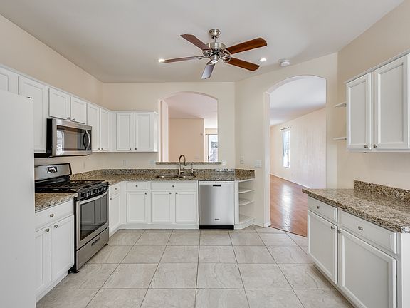 A beautifully laid out 3 bedroom, 2 bathroom home in the highly sought-after Higley Groves community of Gilbert. This charming move-in-ready home boasts granite countertops in the kitchen, wood-like laminate flooring throughout, and a green, fully-fenced backyard. In the spacious primary bedroom, you'll find a walk-in closet with built-in shelving and an attached bathroom which features double-vanity sinks and separate toilet room. The kitchen is complete with granite countertops, ample cabinet space, and a built-in pantry for added storage. Out back, you'll enjoy the large sunny patio and grassy area perfect for a pet. This home sits in a great location with easy access to several local parks and less than a 10-minute drive to the 202!