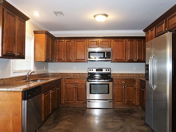 This home brick and vinyl 4 bedroom 2 bath home in Nettleton Schools. The brick & vinyl exterior makes for easy maintenance. The inviting family room has a fireplace and acid stained concrete floors that extend into kitchen & dining area. Great kitchen w/abundant stained cabinetry, granite countertops & stainless steel appliances. Master suite features a tray ceiling, neutral carpet, double vanities and a jetted tub. Other amenities include a two car garage, laundry room, covered porch & landscaping.