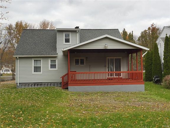 Craftsman-like Cape Cod with front open porch and a rear deck overlooking a deep 375' yard with a huge 2 door garage deep enough for storing cars. Plus a reinforced shed. This 4 bedroom, 1 1/2 bath house has a large living room with fireplace, dining area with slider to deck, working kitchen, central air and a large, dry basement. Convenient to West Genesee Schools, shopping and good access to the city.