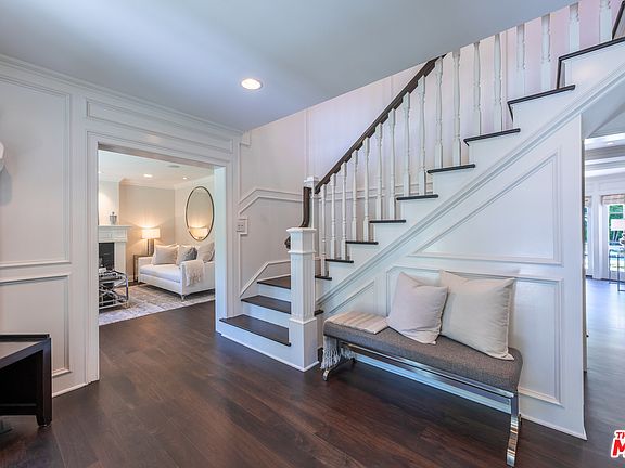 Extraordinary Ken Ungar traditional in prime Longridge Estates. A truly luxurious East Coast classic, completely re-imagined by the owner/designers, with meticulous attention to finish and detail. Expansive, gated front yard leads to formal entry, and a floor plan ideal for elegant entertaining and casual living alike. A gracious sitting room greets guests, opening to a spacious family room and grand, gourmet kitchen. Oversize Sub Zeros, pro-Wolf ovens and honed marble island highlight its crisp white aesthetic. Great room opens to a vast, Town and Country yard, complete with sports court and lovely dove-gray pool. Beautiful master suite with wraparound balcony is adjacent to a spa-like bath, featuring soaking tub and Anne Sacks shower. Three additional upstairs bedrooms are offset by charming nooks, with rich hardwood floors throughout. Mature trees & abundant privacy on over 14,000 ft flat, make this home quite rare; a coveted corner in the Valley's most sought-after neighborhood.