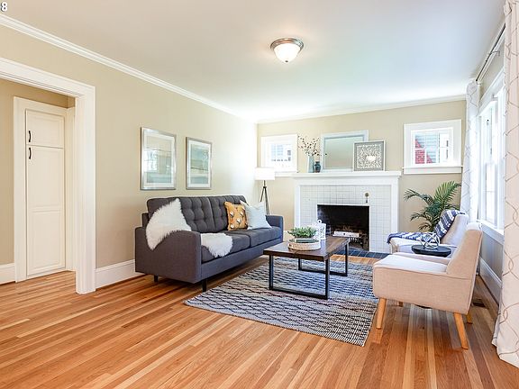 Live in one of the prettiest neighborhoods in Portland! This darling English Bungalow sits on a tree lined street straight out of a story book. Walk to coffee, restaurants,Whole Foods &library. Remodeled kitchen w/custom island opens to LR/DR. Generously sized DR for entertaining, LR room w/fireplace and hardwood floors throughout. Master suite, remodeled bathrooms. Private yard for bbq, gardening & plenty of room for kids & dogs.