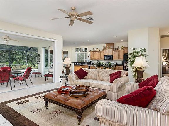 Seller will pay $5,000 in buyers closing costs! Come see this this fabulous fully furnished three-bedroom pool home in the desirable golfing community of Highlands Ridge. The home features an open concept design with large living & kitchen areas, casual & formal dining, 3 bedrooms & 2 baths. The large master suite includes a separate sitting room with closet that doubles as a third bedroom. Spend your outside time relaxing in the covered lanai/screened pool area or take a dip in the salt water pool with waterfall! Backing onto a conservation area creates a relaxed natural setting with deer sightings a common event or just jump in your golf cart and head for the links!