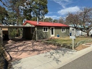 Charmingly updated home on Pueblo Canyon. This well-maintained property fully capitalizes on its prime location and has thoughtful updates throughout the home. The wood-burning stove set against a stunning stone hearth is the centerpiece of the living area. The remodeled kitchen maximizes space and provides access to a fabulous back deck with breathtaking views of the canyon and mountains. The bedrooms have custom closet doors, sheetrock on the walls, and painted wood ceilings to elevate the look of the rooms. The primary bedroom features a sliding patio door leading to the back deck and a hot tub. The bathroom has been beautifully updated for style and functionality. Outside, the deck provides a great space for an outdoor living area and the large, fenced yard is terraced, and landscaped for a beautiful setting to enjoy the views. There is a mature apricot tree in the front yard. In the back yard are mature cherry trees and raised bed gardens with automatic watering system. A large metal shed with power and lights offers a versatile space for a workshop, hobbies, or storage space. The woodshed includes automatic lighting for convenience, and the carport provides extra protection for vehicles or outdoor storage. A second shed at the back of the yard offers additional storage. Just outside the back gate, you have access to the Los Alamos trail system, leading to a nearby playground or into Pueblo Canyon. Recent updates include a new hot water heater in June 2024, new siding on exterior of the home was added in 2018, a sliding glass door added in 2018, and window replacements in 2013 and 2018. This is a fantastic home inside and out. Schedule a showing today!