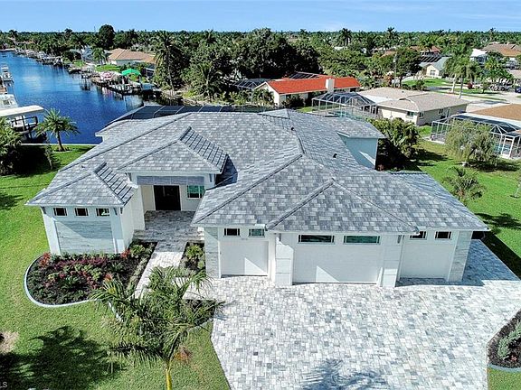 Beautifully situated in SE Cape Coral's Savona neighborhood on an exclusive direct gulf access triple lot with 173' of canal footage with a desirable Western Exposure. Contemporary style home includes 2 Master Suites and 2 guest bedrooms, a study with 3.5 baths and 4 car garage. Beautiful lush landscaping and a paver drive to enter through a custom iron door to an open concept great room & dining area. Inside this high-end home with many upgrades and rich finishes such as exotic stone flooring throughout, kitchen with hidden pantry and all wood cabinets, including wet bar and Cambria countertops. This home boasts a smart technology automation system & upgraded trim details. The 90 degree sliding glass doors open up to an expansive summer kitchen, gas fire pit, custom pool & spillover spa (solar & heat pump) with huge paver lanai, outdoor patio and 60 ft composite dock. Enjoy the designer lighting throughout as well as Miele Appliances. Also notable are the energy efficient features like impact low E windows, R-38 insulation, high efficiency water heater & 16 SEER A/C Systems.