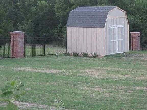 Gorgeous single family home on end of cul-de-sac. Quiet gated community less than 10 minutes from Tinker AFB and 15 minutes from downtown and Norman. 3 BR, 3 BA, LR, DR, breakfast nook, spacious FR with wood burning fireplace, wired for surround sound. Pergo flooring in common areas. Kitchen has granite countertops, SS appliances including refridgerator, microwave, double oven and natural gas range. Large walk-in closet in master BR. Oversized shower and jacuzzi tub in master bath. Large 800+ sq ft stone patio with natural gas hookup for grill. Prewired for outdoor spa. Pet friendly 1.5 acre yard with brick and iron fencing, external storage shed. Huge 3+ car garage (980 sq ft) with in-ground storm shelter. Sprinkler system and alarm system installed. So much more. Military friendly, available 1/15/18.
