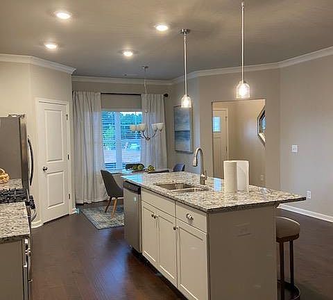 Creekwood a 55 and over community The Augusta featuring 3 bedrooms, 2 full baths, 2 car garages. Kitchen with 36 " cabinets, stainless steel appliances, gas range, dishwasher, microwave, Laminate floors in the Kitchen, dining room, Family room. Owner suite with trey celling, carpet, walk in closets Owners Bath with a stepless tile shower, double sinks, gentleman Vanity. 2 secondary bedrooms and a full bath in the hallway. Quid units 4 to a unit