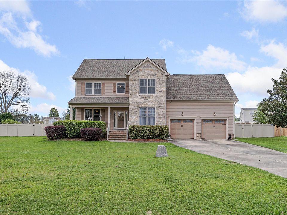 Feels like country living but close to everything! Meticulously maintained 3 bedroom stately home with massive bonus room, formal Dining and Living room in quiet quaint neighborhood with NO HOA and NO CITY TAXES! This home has it all! Covered front porch, 2 story grand Foyer with gleaming hardwood floors on main level! 9' ceilings on first floor! Kitchen is open to the LR and has ample cabinet/counter space, stainless appliances (fridge, washer, dryer included). Party deck (20x30) on the back with fully fenced private flat yard with raised garden beds, green house and shed! Primary bedroom with amazing ensuite with huge shower and separate soaking tub, dual vanities, custom WIC with tons of space! New roof in 2020. Solar panels! Dual zone hvac repl in 2021 (energy efficient)