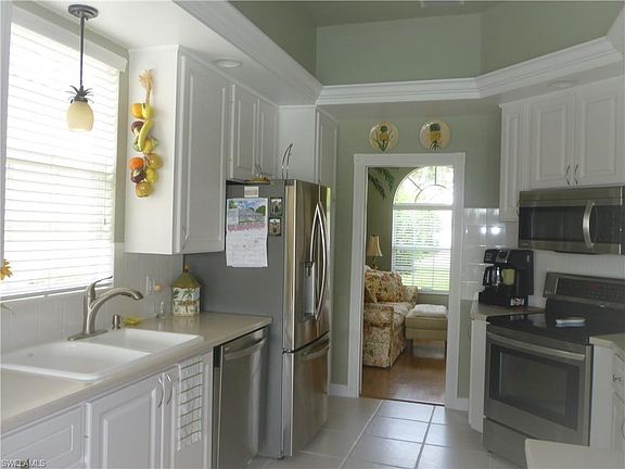 Spotless, open floor plan with lake views from main living areas and master bedroom. This 3+den, 2.5 bath Oakmont model with private pool is built with steel reinforced poured concrete and set amid miles of winding lakes and mature landscaping with southern exposure. NEW POOL CAGE & DECKING! NEWER A/C, HOT WATER HEATER WASHER & DRYER & STAINLESS APPLIANCES! FRESHLY PAINTED EXTERIOR! Add'l upgrades include corian counters, bamboo floors in den and master bedroom, enhanced built-in entertainment unit, crown molding, window treatments, garage cabinets & shelving, storm shutters and more. Community features resort & lap pools, Hartru tennis courts, boccie, putting green, fitness center, restaurant, gas station & car wash, beauty parlor & nail salon, professional lifestyle director with large social program, and low HOA dues. Close to beaches, shopping, entertainment - all that the Naples lifestyle should be. Come take a look - you'll know you want to be here.
