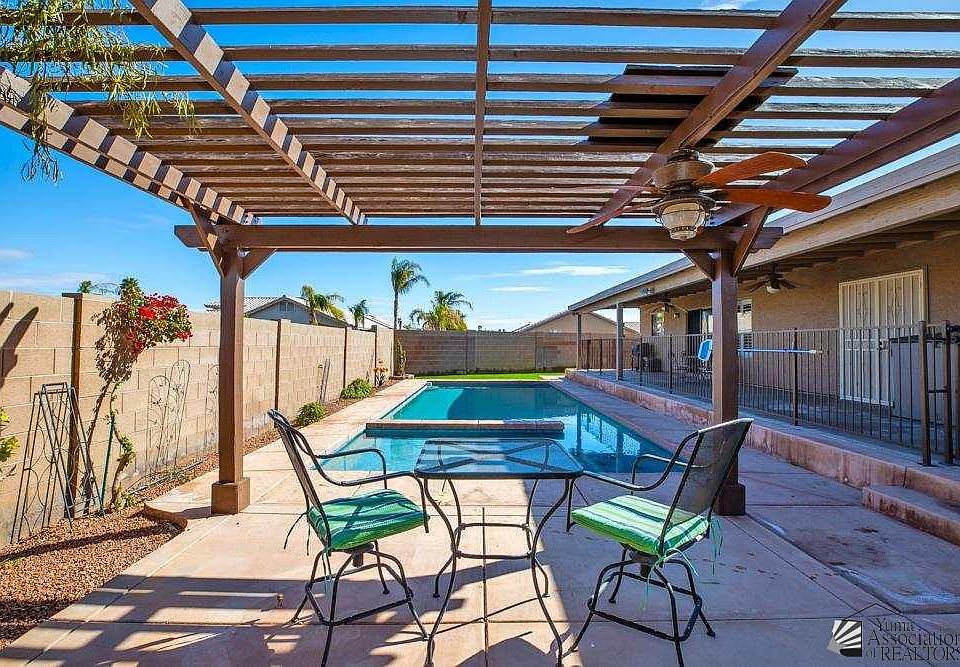 Beautifully kept, corner Lot home ready for you to own & love! Featuring a mostly open floor plan, optional den/office off the dining room & tile floors in main living areas. Carpeted bedrooms, custom built shutters throughout the home & remodeled tile shower in primary bath are just a few of the home's extras. Fantastic kitchen with tons of cabinet and counter space. You will love the ample room in backyard to enjoy an outdoor BBQ, right next to an existing sparkling pool! Short distance to schools & park.