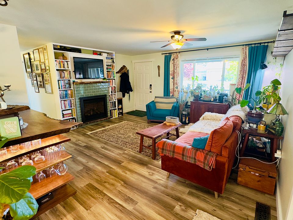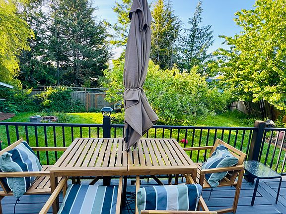 This cozy cottage-style home has been curated to give a secluded feel in a quiet, family friendly neighborhood, with the convenience of downtown Anacortes just 10 min away. The backyard is surrounded by tall trees and fruit trees - pick your own apples/plums/cherries/blackberries/blueberries depending on the season and relax with a cup on the back deck listening to the birds chirping and rustle of leaves. Access miles and miles of Anacortes City Forest Land trails just a 15 minute walk away and pop into town for work, errands, or any of this quaint town's amazing restaurants! Enjoy the seclusion of nature with the convenience of Anacortes dining and shopping nearby - get away from the city and experience the best of small town Washington! Home is fully furnished and rent includes all utilities. The large primary bedroom will give plenty of private space and a luxury soaking tub will melt your stress away. Cozy up in front of the TV and a fire with easy, one touch gas fireplace. Throw a dinner party in the open living area, large fully upgraded kitchen, oversized dining table, built in bar and large deck! Enjoy the library (bookshelves in the living room and bedroom), but please be respectful and please don't break the spines or mark the pages. This is my personal collection and not a give one-take one book situation. Prefer 2-3 month lease, but length is negotiable. No smoking. ALL utilities included (up to $200 electric but normal is $10-$50, gas, water, trash, internet). One car garage and two-wide driveway, plus street parking. Lawn maintenance included. $2500 security deposit is all refundable. $250 cleaning fee. Pets are allowed with prior approval, $1000 refundable pet deposit, and additional $50 cleaning fee. The back yard is fully fenced, but dogs are not allowed to stay kenneled outside. Maximum 2 pets.