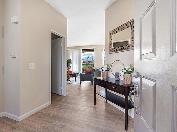 $$$ MILLION DOLLAR VIEW. A fantastic opportunity! This well-maintained, furnished property overlooks the Palm Valley Country Club Challenge course hole #2 fairway and green. The panoramic mountain view with water fall and fountain is sure to attract a lot of interest. Perfect for anyone looking for a seamless move-in experience, whether for a seasonal getaway or a new home. Sunsets on the patio with a built in grill, a motorized awning, and a view like that...it doesn't get much better! The perfect setting to relax and unwind. This property is sure to catch the eye of potential buyers looking for their dream home or vacation getaway. The kitchen features quartz countertops, new cabinet fronts, and all new stainless steel appliances purchased 2020. Both bedrooms are ensuite, with balcony access overlooking the golf course and the million dollar view. Palm Valley CC has 2 wonderful Ted Robinson designed golf courses, 12 tennis courts, 12 pickleball courts, large clubhouse with golf and racket shops, fitness center, 2 restaurants and so much more. Come check out this premier resort community and see why they call it The Fun Club! Priced to sell.