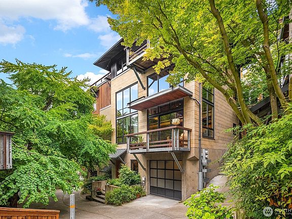 Live in a work of art at the iconic Fremont Lofts, blocks from the Center of the Universe! Wander up the Dutch-style “woonerf” private lane to this award-winning, ivy-draped community of 8 homes by vaunted NW architects. Soaring 21-ft ceilings and expansive living spaces pair with creative uses of steel & natural wood for a truly unique homeownership experience. Four stories of open, versatile spaces filled with light year-round. Main level with refreshed kitchen opens to private back garden surrounded by greenery. Penthouse-level primary suite with sweeping views, deck, ensuite bath, walk-in closet, & laundry. Mezzanine level for work, media, dining. Lower floor features Murphy bed & bath. 1-car garage + deeded guest parking space. No HOA!