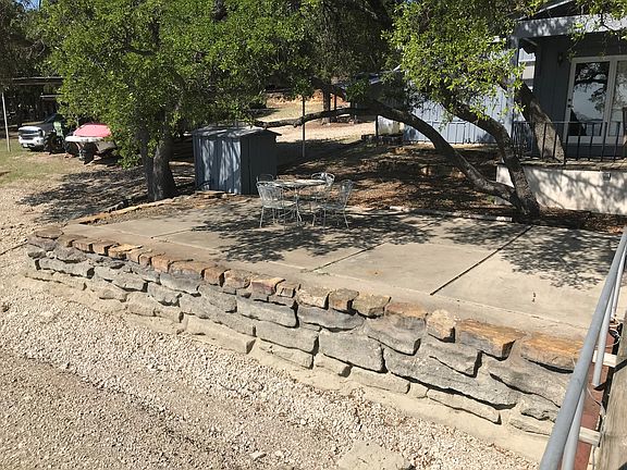 $274,900 OBO. The home is a 1,330 square foot 2-2 with a large living area featuring a wood burning fireplace. The house has a covered 10’ X 19’ front porch, a concrete side patio with a built in brick grill and a spacious front patio under shade trees. It has its own 20’ X 20” dock with a 113’ walkway and new encapsulated foam flotation. Currently, there is approximately 12’ of water under the dock. There is a detached 16’ X 20’ shop building with a covered side parking space and another 6’ X 10’ storage building. The lot has many mature live oak trees, a stone lakefront wall and has a concrete driveway down the hill behind it. The home next door at 3815 Blue Fin Road is owned by a family member and is also for sale. Owner financing available. Make an offer. Please call David at 817-300-0190 to see this property.