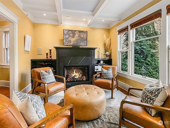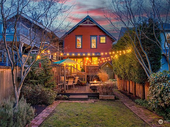 Welcome to a classic 1901 Victorian farmhouse located on an excellent street in the heart of Wallingford. Enter into a formal entry w/open staircase & circular floor plan, high box beamed ceilings, beautiful millwork, Douglas fir floors & classic detailing throughout. Living w/custom gas fireplace framed by built-ins & a formal dining all w/surround sound. Lovely light & bright remodeled kitchen facing West opening to entertaining deck & idyllic yard for sun filled fun or perfect evening dining. 3 bdrms up all w/walk-in closets! Plus a finished basement w/flex space & lots of storage. Renovated including seismic retrofit, updated electrical, plumbing & so much more. Excellent location, schools & central to everything. This is very special!
