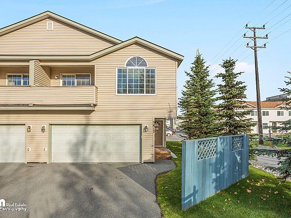 East side townhouse perfect for roommate, multi-generational families or a professional looking for a place to relax after a long day of work or Alaska adventures. Open kitchen with room to entertain. Grill out on deck and enjoy mountain views. Cozy up in front of gas fireplace. Originally the model home - great pops of color. Each floor has a master bedroom. Easy access to JBER, hospitals, UAA.