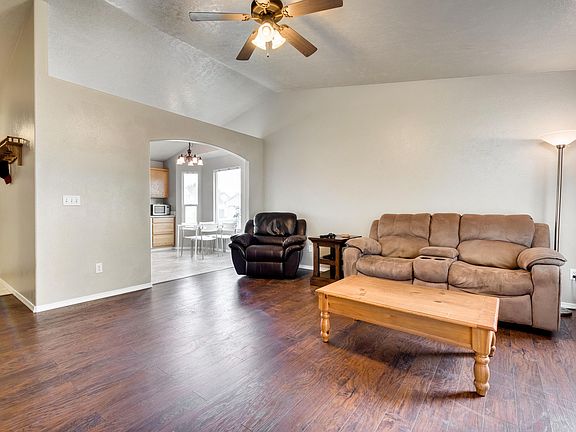 Move in ready home on corner lot with RV parking. Fresh paint, flooring, and baseboards. Features master bath, walk-in closet, vaulted ceiling, fire pit, and horseshoe pit. Offered at at an affordable value.
