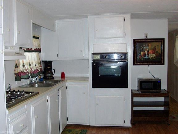 Remodeled singlewide mobile home with lots of storage; open floor plan in kitchen, dining, and living room area; laundry room; enclosed rear porch; well and septic; spring house; appliances convey