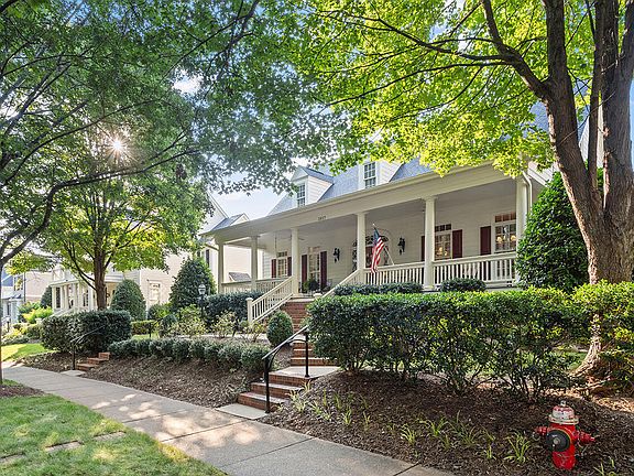 Gorgeous custom construction by Tingen Construction sited on private 1/4-acre lot with beautiful landscaping. Walk to neighborhood pool club, tennis, numerous parks, shops, restaurants, Neuse River greenway trail, and Falls Lake. Open flowing floorplan perfect for entertaining. Stunning trim work details, transom windows, hardwood floors. Gourmet chef's kitchen has gas cooktop, wine refrigerator, SS fridge included, center island, recessed lighting. Elegant formal dining room with wainscoting / chair railing. Sun filled breakfast room. 1st floor primary suite with updated bath and large custom closet. Generous guest rooms 2nd floor. Bonus room hide-away over garage has its own full bath and built in shelving. Three season outdoor living on covered rocking chair from porch, screened porch with collapsible windows for warmer or cooler weather, beautiful brick garden patio.
