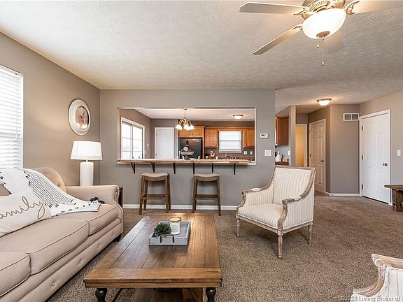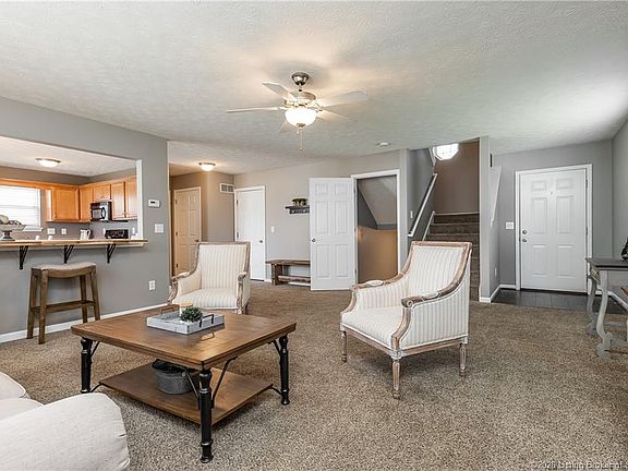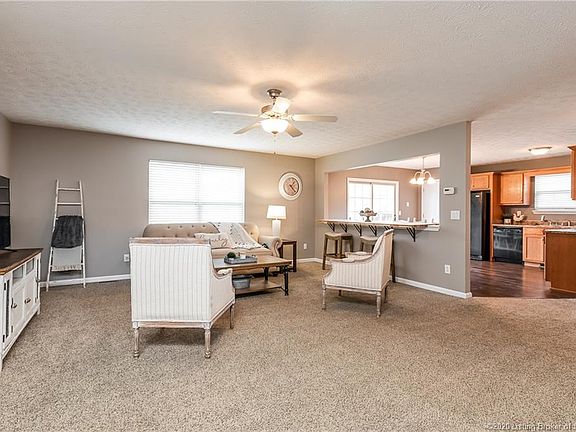Turn Key in Glenwood Springs! Minutes off of the 265 & Charlestown Rd exit, this location is a WINNER! This open, spacious two story floor plan has a lot to love about it, especially if you are looking for huge room sizes! The main level features an open concept kitchen & living area as well as a guest half bath. The kitchen has brand new wood laminate floors & all the appliances remain. The living room features space for extra seating at the newly installed butcher block bar & will easily accommodate large furniture. From there, you have the choice of going up or down. The finished lower level has a huge, wide open family room that will hold a pool table as well as room for other activities. Upstairs, you will find three humongous bedrooms, two full baths & a laundry room equipped with both washer & dryer. If you are tired of cramped living, this is the one. No worries though. Minimal maintenance outdoors with maximum outdoor living space. The beautiful flower beds have concrete edging & there is a two tier deck out back to gather. Schedule a private tour today!