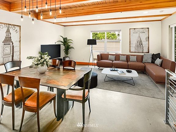Walkscore 88! Ideal Wallingford location just a short jaunt to Wallingford, Greenlake, Stone Way, Gas Works Park, and Fremont! Stand-alone residence located off a quiet street with offstreet parking. Exposed beams, modern lines, staircase w/exposed treads, concrete floors w/radiant heat. Great room concept floorplan w/extensive beam work. Gourmet kitchen w/quartz counters, island, and custom cabinets. Lavish top floor master suite w/spa-like bath. Generous size deck with peak-a-boo space needle view, perfect for entertaining; watch the Space Needle fireworks in comfort! Entry level features two spacious bedrooms, 3/4 bath w/walk-in shower. Easy access to freeways, transit, trails, parks, UW, amenities/recreation, and Downtown Seattle. 2021-07-29