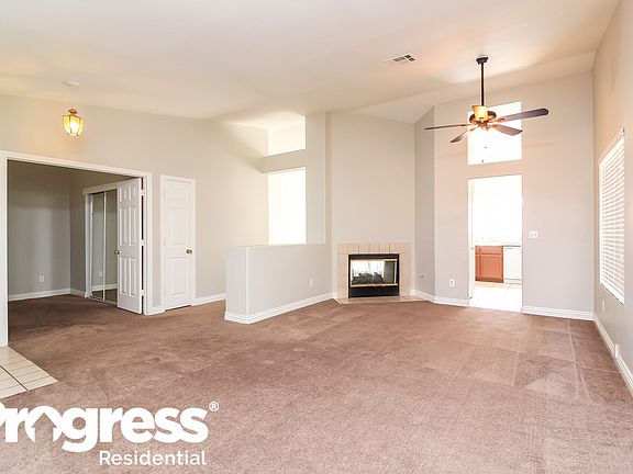 Beautiful single level home! This home features a wonderful double sided fireplace, renovated kitchen sporting granite counter tops with wide breakfast bar, modern coffee-toned wood cabinets, ceiling fans, and double sink with granite vanity in master bath with large bathtub. Exterior includes attached garage and desert landscaping. Schedule your showing today! Note: The listed amenities may not be accurate. Please consult with a Progress Residential leasing agent to confirm the property will meet your individual needs.