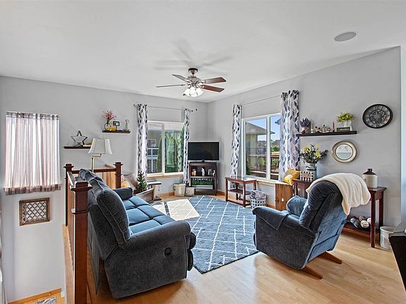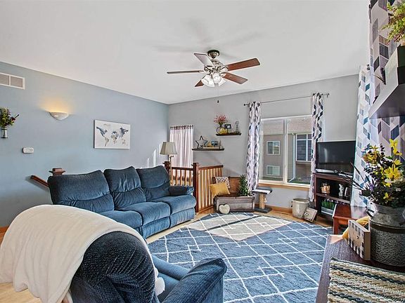 Great ranch style condo in College Community School District! Super clean & comfortable with high ceilings, sleek kitchen with custom counters & unique backsplash, and nearly new appliances. Great layout with an open main floor and primary bedroom on the main, and finished lower level with 2 more bedrooms (one would make a perfect home office) and another bath & living room. Primary BR closet has an extra laundry hook-up for main floor laundry (machines are currently in LL; included) and a big walk-in closet and bath suite. Hardwood floors on the main level with new carpet in BR & downstairs. Nice back patio for grilling, and a 2 car garage that steps right into the kitchen. Lots of options in the lower level for gym, game room, office, or teen space. Great community with trails, pond, and located just seconds from shopping (Target, Menards), Hwy 30, Hwy 100, Hwy 151, Fairfax, and more parks.