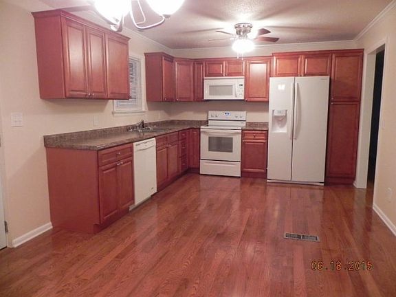 4 Bedroom 2 1/2Bath mostly brick split foyer on large corner lot. Situated in Cherokee Woods subdivision the large home features an updated kitchen, with all wood cabinets, no particle board here. Bathrooms with new vanities. Energy efficient Low-E Windows,2-All electric Heat pump providing central heat and air. A gas water heater for virtually endless hot water. New Electric Range & Microwave, and almost new refrigerator and dishwasher, other appliances include a washer and dryer.New Ash Hardwood Floors in livingroom, kitchen diningroom combo,and hallway. New carpet in the bedrooms, Luxury vinyl plank in the sunroom/breezeway as well as the downstairs den and bedroom.4 bays of garage with electric openers 2 with 8' tall doors. Home is move in ready. Agent is related to the Seller.
