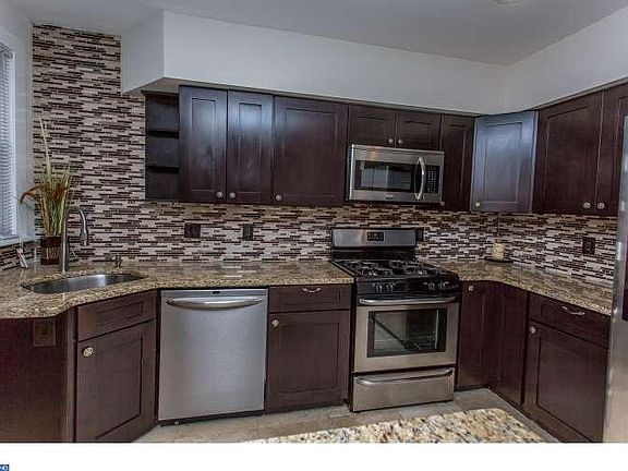 Absolutely Beautiful Twin Home that was completely renovated to Brand New Condition. Gorgeous Kitchen with granite counters and breakfast bar, ceramic back splash, and stainless steel appliances. Spacious Living Room with stone fireplace, formal Dining Room, Master Bedroom with vaulted cathedral ceiling, New Hall Bathroom with granite vanity and gorgeous ceramic tile, Large Finished Basement Recreation Room with beautiful Powder Room, New Gas Heater and Central Air, new carpeting throughout, covered Front Porch, one car detached Garage, and all appliances are included. Welcome Home to carefree living and close to the trolley stop for easy and convenient transportation. Quick Settlement for the Buyer who wants to lock the interest rate now.