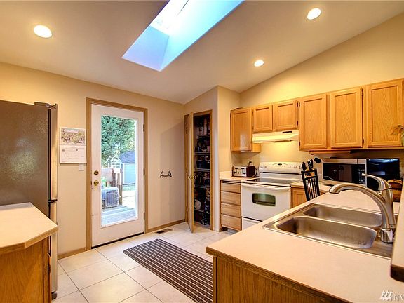 Tip top shape rambler awaits new owners! Travertine floors throughout kitchen, baths, and hallway. Vaulted Ceilings and kitchen skylite. Master w/full bath & walk-in closet. Dining area off kitchen & eating bar. Spacious living room w/ gas fireplace. Carrier high efficiency furnace. French door off kitchen to deck and fenced private yard. RV parking. Just move in and enjoy!