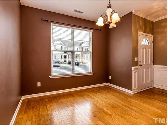 GREAT LOCATION! This spacious townhome is minutes from Downtown Raleigh and Wake Forest shopping, entertainment and parks. First floor hardwoods and 9 ft. ceilings, plus dual owner's suites. Warm and inviting family room has a bright and airy feel and leads to a private patio with storage and back yard with a wooded view. Great starter home!