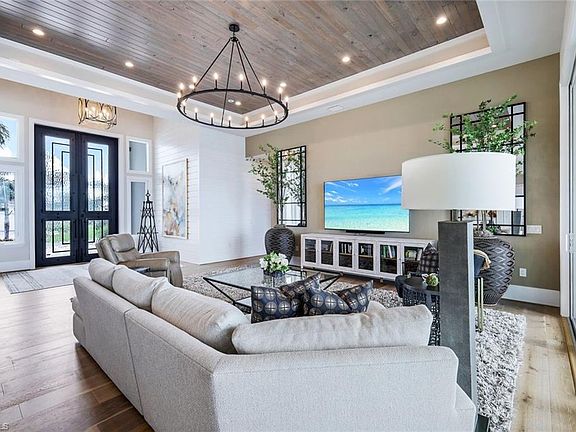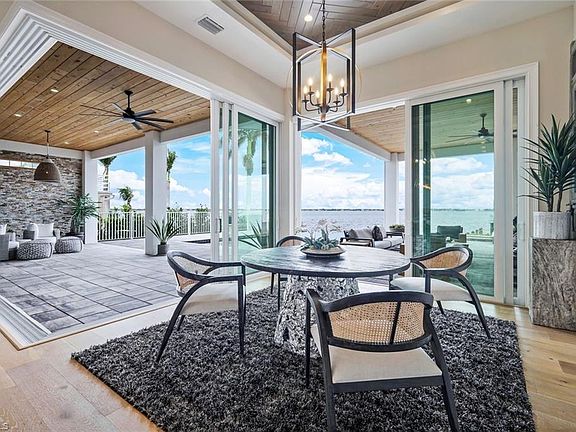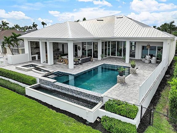 Gulf Access waterfront oasis located highly sought after Savona neighborhood of Cape Coral Florida. As you enter this remarkable residence you will be captivated by the expansive eastern exposure waterfront views. In 2023 a lavish renovation transformed this already beautiful home into a true masterpiece. Luxury, comfort, and breathtaking views await you. Kitchen features sub zero refrigerator, Monogram Series GÊ appliances with gas cooktop, wine refrigerator, double island, and separate butler's pantry and additional second full size refrigerator/freezer. 500 gallon buried propane tank for the spa heater and cooktop. Entire house was repainted inside and out, updated fans, chandeliers, and lighting. Wide 8-3/4 premium engineered Oak wood floors, Tongue and groove Southern Pine wood ceiling inlays, stone, brick and ship lap accent walls, large 9-1/2" base boards, new pool equipment, Exterior decorative accent shutters, corbels, and outriggers, renovated outdoor kitchen with new BBQ appliances, flame table and Quartz countertops. New dock and lift features:33,000 LB super lift and 42'L x 14'W boat slip. Full list of upgrades available upon request. Built by Windward.