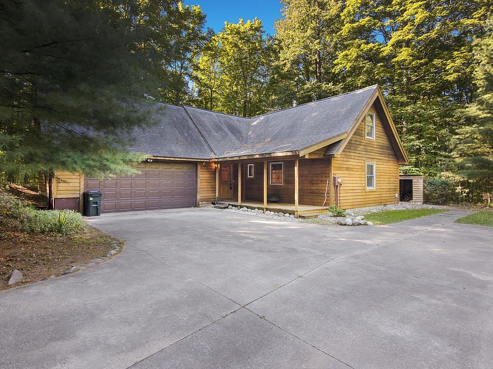 Are you looking for your cabin in the woods? This just might be the place. This two bedroom two bath home sits on almost 20 acres of towering hardwood trees. You’ll enjoy the secluded location at the end of a paved road, just before it becomes a seasonal road, that offers peace and quiet. The home has an attached two car garage as well as a 960 sq ft detached garage so there’s plenty of room for your snowmobiles or four wheelers. The home offers an open floor plan with vaulted ceilings and a loft that could be used as a third bedroom or office. Appreciate the rustic feel with wood accents and cozy up to the wood-burning stove in the wintertime. You can drop your gear as soon as you enter the home, as you’ll find a mudroom and spacious laundry room. The main floor primary bedroom offers a walk-in closet and private bath. If you want to relax or entertain outside, there’s a multilevel wraparound deck where you can relax under the shade of the trees. A trail has been cut through the woods, so you can ride your side-by-side through the property. Enjoy watching the wildlife, listening to the breeze in the trees, or just enjoy the quiet. While this home enjoys a secluded location, it’s only about 10 minutes from Bellaire, conveniently located within 10 miles of the ski slopes at Schuss Mountain and numerous area golf courses, and near some of the finest lakes in the state. Whatever your favorite recreation you’ll find it nearby.