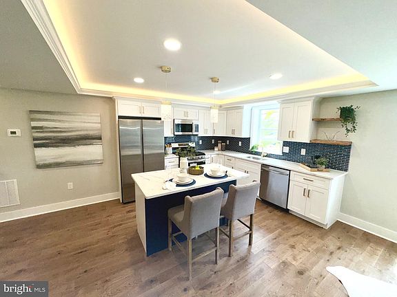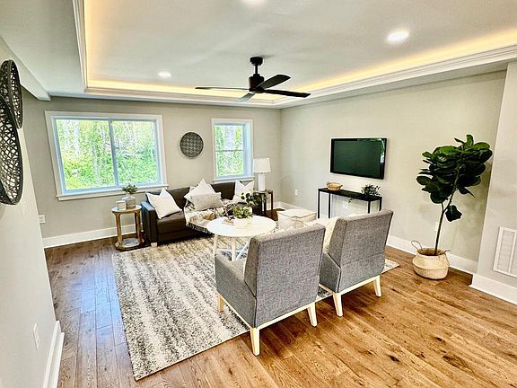 BACK ON THE MARKET! Step into modern luxury with this impeccably remodeled home! Every detail has been thoughtfully crafted, from the brand-new roof to the all-new framing, floors, electrical, plumbing, foam insulation, and HVAC systems. Enjoy the elegance of hardwood floors, a fully-equipped kitchen with stainless steel appliances, and quartz countertops. The three bedrooms and two bathrooms upstairs provide a comfortable retreat, while the finished basement with a full bathroom adds versatility to the living space. The custom tray ceiling with LED lights adds a touch of sophistication, and the two parking pads in the backyard ensure convenience. This is a dream home where style meets functionality!