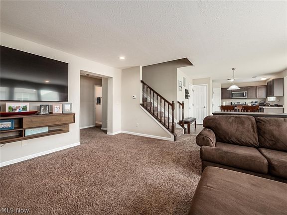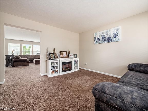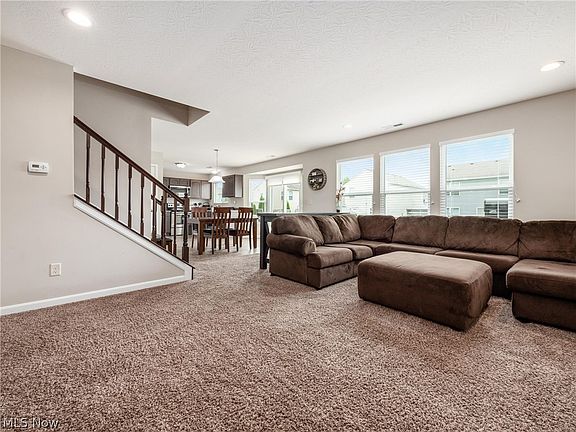 This property offers an open floor plan with a living room that flows into the family room and kitchen, a half bath on the main floor, and fitted blinds throughout the house. The upstairs offers an owner's suite with private bath and walk in closet, two more bedrooms, full bath, second floor laundry, and an upstairs family room. It also has a 2-car garage, extended patio the length of the house, new vinyl fencing, updated landscaping, and a new furnace.