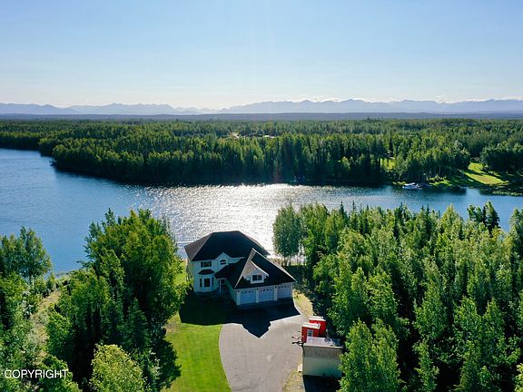 CUSTOM LAKE FRONT DREAM HOME! This gem offers an extraordinary blend of luxury, comfort and natural beauty nestled on a serene lakefront paradise. All 3 levels offer 9' ceilings with an open-concept layout that flows seamlessly, offering breathtaking lake views from nearly every room. The daylight basement offers a possible in-law suite with it's own garage, ideal for multi-generational living.Step outside and immerse yourself in 1.71 acres of meticulously landscaped grounds with direct lake access. The outdoor area is designed for both relaxation and entertainment, featuring an expansive deck, a lower patio with a hot tub, and a cozy lakeside firepit. Enjoy peaceful moments by the water or take advantage of recreational opportunities such as boating, fishing, and floatplane watching. Additional storage is readily available with a boathouse, a woodshed, a lakeside one-car garage, a regular shed by the driveway, and a spacious 3-car garage with direct access to the main level of the home. That's 1335-sf of garages between the 4! With plenty of room on the lot to build a shop if you need more space.  Additional features that give you peace of mind: This home has 2 boiler that are automatically synced to work together and a security system to alert fire or water issues as well as security.   This 4249-sf home has custom touches throughout from the cherry railing, heated sidewalks, granite counters & other high-end finishes. Boasting 5 beautifully appointed bedrooms, including a potential in-law suite, ensures ample space for family and guests to enjoy & relax.