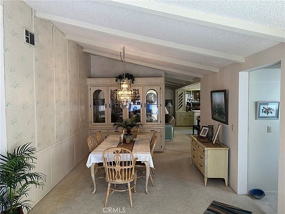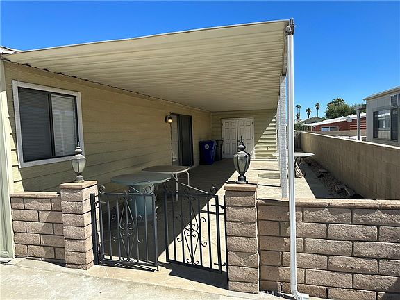 Welcome Home! Located within Palm Desert Greens Country Club a 55+ gate- guarded community and a low HOA dues of $351 which includes trash, cable TV and WI-FI, and GOLF. This lovely triple wide with vaulted ceilings, 2 bedrooms, 2 bathrooms, formal dining room, family room and living room, wet bar, large laundry room, kitchen has lots of counter space, home is located on a cul de sac with a mountain view from the spacious patio & living room. Permanent foundation for easy financing. Complex offers a large club house with restaurant, pools, basketball, tennis, pickleball courts plus FREE GOLF for homeowners on its 18 hole par 3 course. Outside the complex there are theaters, restaurants, shopping and freeways near by. Palm Desert Greens CC is waiting for you.