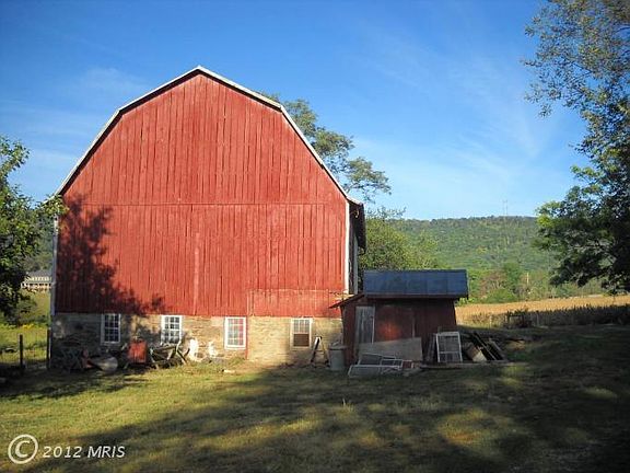 Working Farm. Expanded farmhouse, bank barn, run-ins, outbuildings. 50+ acres in corn or soy, 10+ acres hay. Fenced, paddocks. Log section circa 1750. Mild slope and level, creek, pond, private. On dead end road, mountain and pasture views. Kennel. Lots of potential. In Land Use program for reduced taxes.Seller not responsible for rollback taxes.