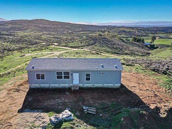 Own your own piece of paradise! Almost 20 acres with a 3 bedroom/ 2 bath newer modular home on its own permanent foundation. The floorplan of this home is excellent! Master bedroom with its walk- in closet and en-suite bathroom is located on one end of the home and the other two bedrooms are located on the other side of this home with their own shared bathroom. Family room, living room, and kitchen with dinning located right off of the kitchen. Breath taking views of the mountains, valleys, and surrounding areas from every window. There is an additional larger pad above this home that could be used to build another home on this property. Great potential for multiple families or to have rental income coming in. The amount of land on this property with its amazing views is like living in pure serenity. It also has a peek a boo lake view.! Just ten minutes from the Temecula Valley wineries too! Some of the construction for this home is not complete. Owner has the property priced low due to this for buyer's advantage! Please call for details.