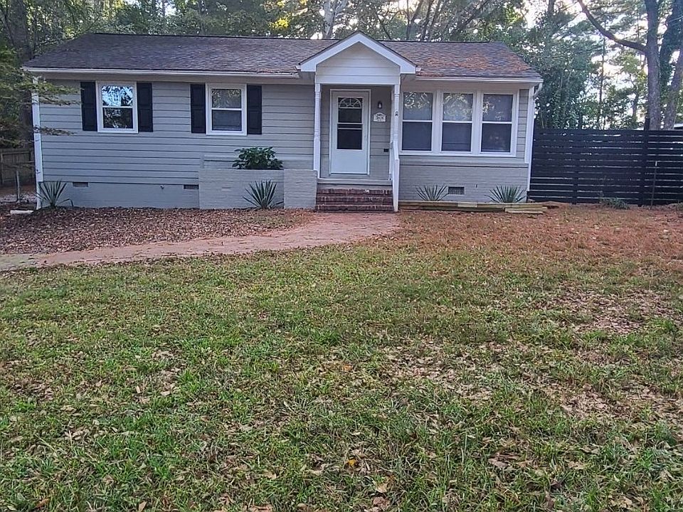 Renovated 8 months ago with new kitchen (cabinets, granite countertops, micro,range, dishwasher (all stainless). Baths remodeled with new flooring, vanities, full walk in shower. (No tub). Hardwood floors refinished throughout. No carpet. All interior repainted. Crown molding throughout house. Paddle fans. Skylights. All on a 0.75 acre secluded lot with public water/sewer in close proximity to downtown Raleigh. Exterior storage shed. Back and front porches. Dogs accepted with some breed exceptions. Mostly fenced. Please, don't even ask about cats. Thank you. No smoking. Dogs only with pet fee and monthly pet rent. Tenant pays all utilities and maintains front yard and immediate back yard. Like new home.
