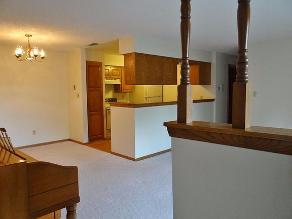 Affordable Second Floor Condo with Western Exposure! Why rent when you can own? Spacious living room and dining area. Balcony access for relaxing and fresh air. Kitchen has wood cabinets and appliances. Concealed in unit laundry with new washer and dryer. Two bedrooms and two baths. Lots of closet space plus big basement storage room for all the extras. Convenient one and a half-car garage on the end plus assigned parking space. Located in Caledonia!