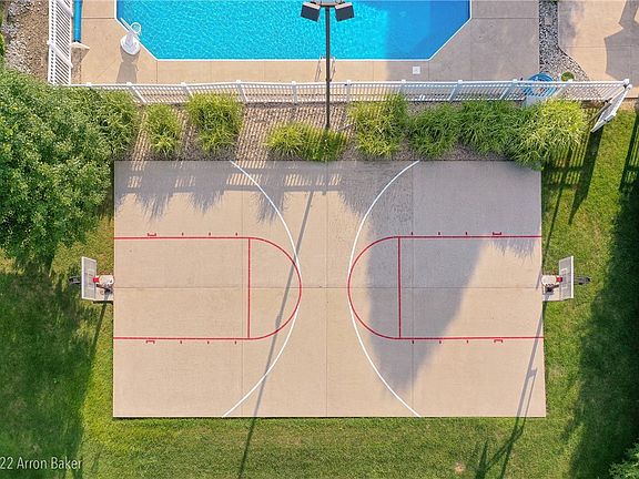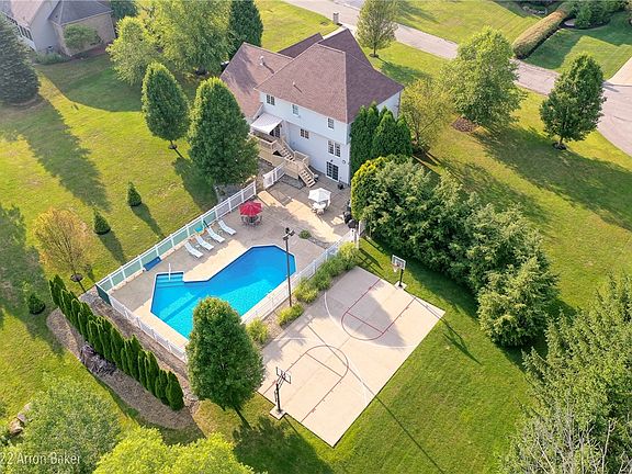 Welcome home to this beautiful, brick and vinyl 4 bed, 3.5 bath home. The two-story foyer shows the beauty in this home. A formal living room and a den/office are off the foyer area. Dining room has tray ceilings, hardwood chair rail and floors. Family room with gas fireplace, lots of natural light and an open floor plan into the eat-in kitchen. Sliders off the eat-in kitchen go out to the two-tiered deck. The kitchen has wood cabinetry, granite countertops, center island with seating and all stainless-steel appliances, a dual fuel stove is an added bonus. The laundry room is located on main floor. Upstairs the primary suite w/ private remodeled bath, walk-in shower and soaking tub are just some of the features in this beautiful bath. Three additional bedrooms, full bathroom are located on the upper floor. The finished basement has a full kitchen and a game room. Sliders out to the inground pool and full-size basketball court. Enjoy the outdoors in the private treed backyard.